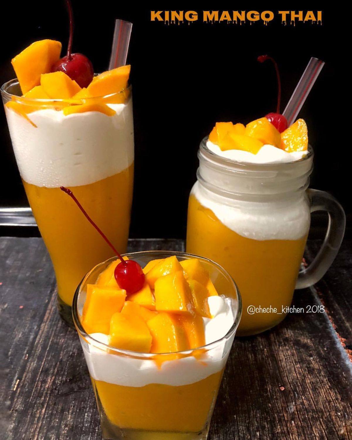 - Sajikan segera dan nikmati kesegaran King Mango Thai ini! Tambahkan topping jika suka, seperti potongan mangga di atasnya.