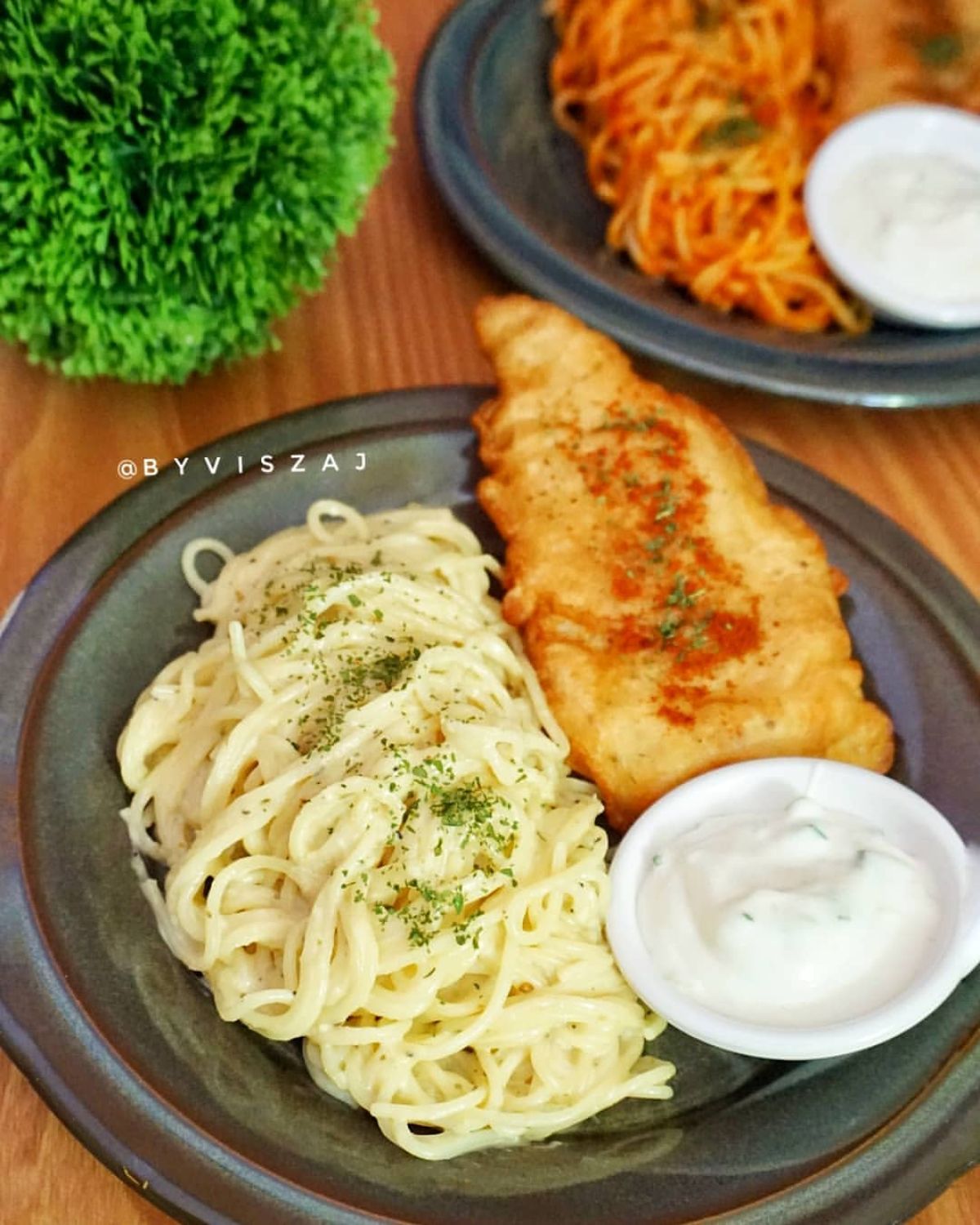 Siapa yang tidak suka perpaduan ikan goreng yang renyah dengan spaghetti yang creamy? Resep ini adalah variasi enak dari fish n spaghetti marinara. Ikan crispy yang dipadukan dengan creamy spaghetti ini akan memanjakan lidahmu. Yuk, kita buat!