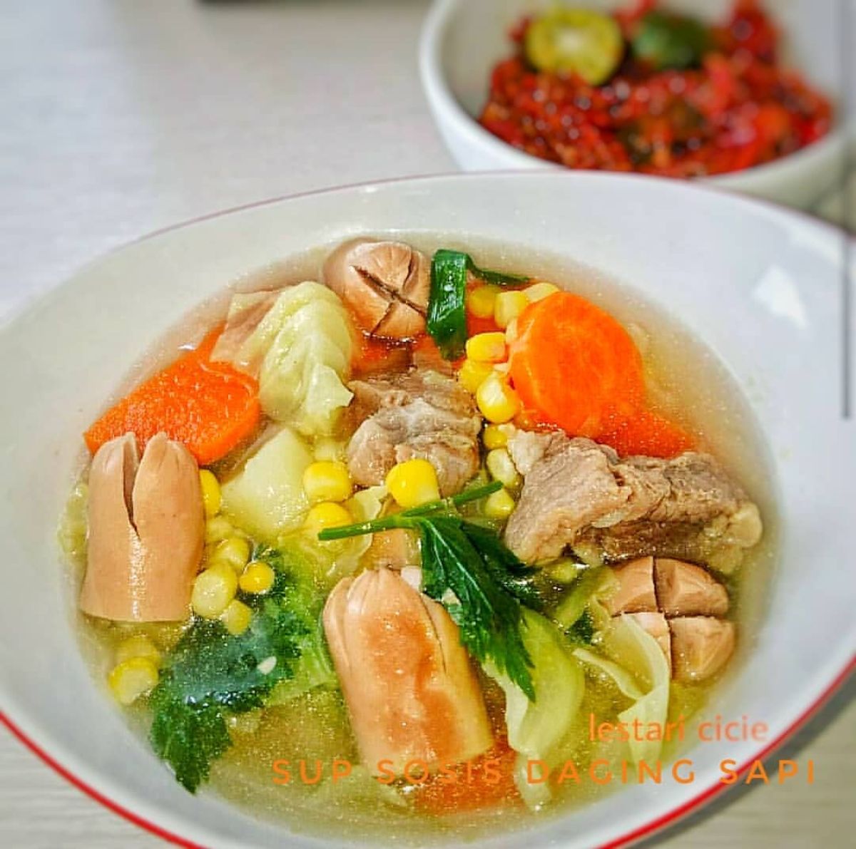 Secara kultur, sup adalah makanan yang sangat populer di Indonesia. Sup kaya akan rasa, gizi, dan dapat disesuaikan dengan berbagai jenis bahan. Menambahkan sosis dan sayuran memperkaya rasa dan menjadikannya lebih menarik bagi anak-anak. Total kalori untuk satu porsi sup ini sekitar 250 kalori. Resep ini sangat cocok bagi yang ingin menyajikan hidangan lezat tanpa harus menggunakan banyak minyak goreng. Selamat memasak!