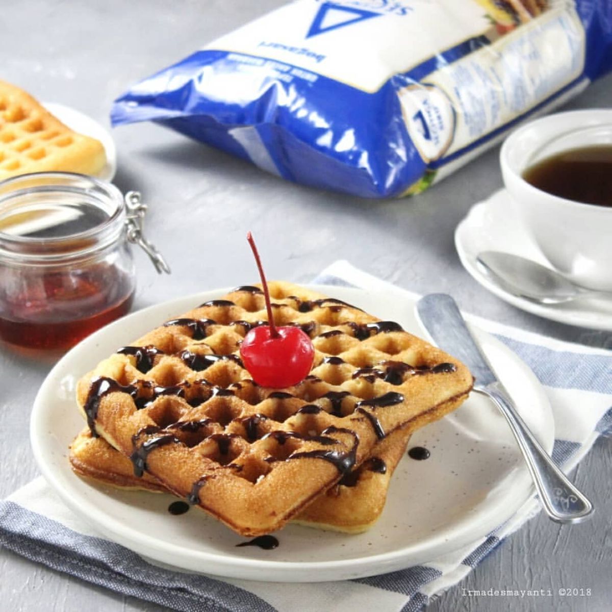 - Sajikan waffle dengan topping favoritmu, seperti selai, madu, atau es krim. Siap dinikmati!