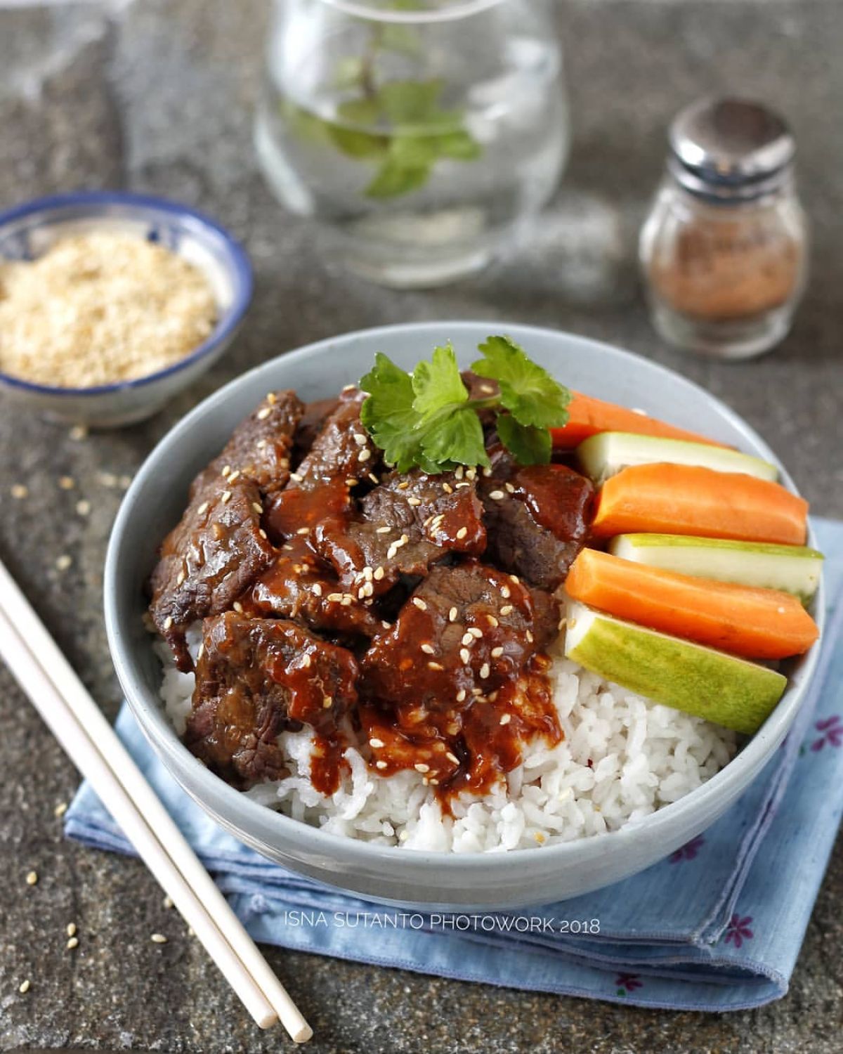 - Campur semuanya: Siapkan piring, susun nasi sebagai dasar, lalu tambahkan daging sapi, sayuran, dan telur di atasnya. Siram dengan Kecap Manis Bango untuk menambah cita rasa manis yang khas.