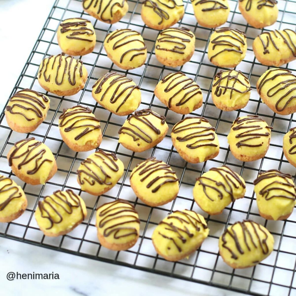 - Setelah kue matang dan dingin, hias dengan coklat putih yang sudah diberi pewarna kuning. Kamu juga bisa menggunakan coklat kuning dan coklat leleh untuk menghiasnya!