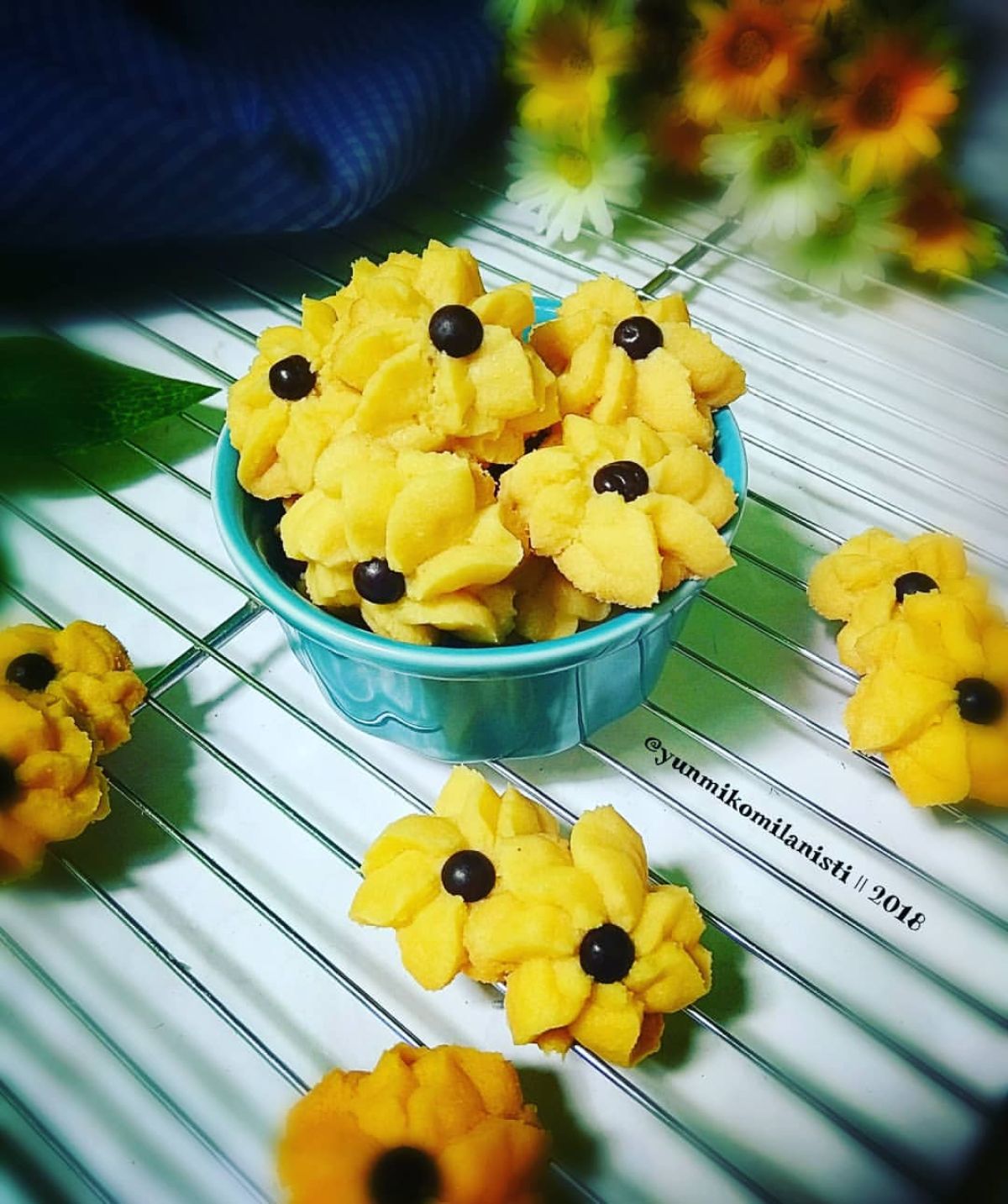 - Setelah matang, keluarkan kue dari oven, dinginkan, dan simpan dalam toples kedap udara agar tetap renyah.