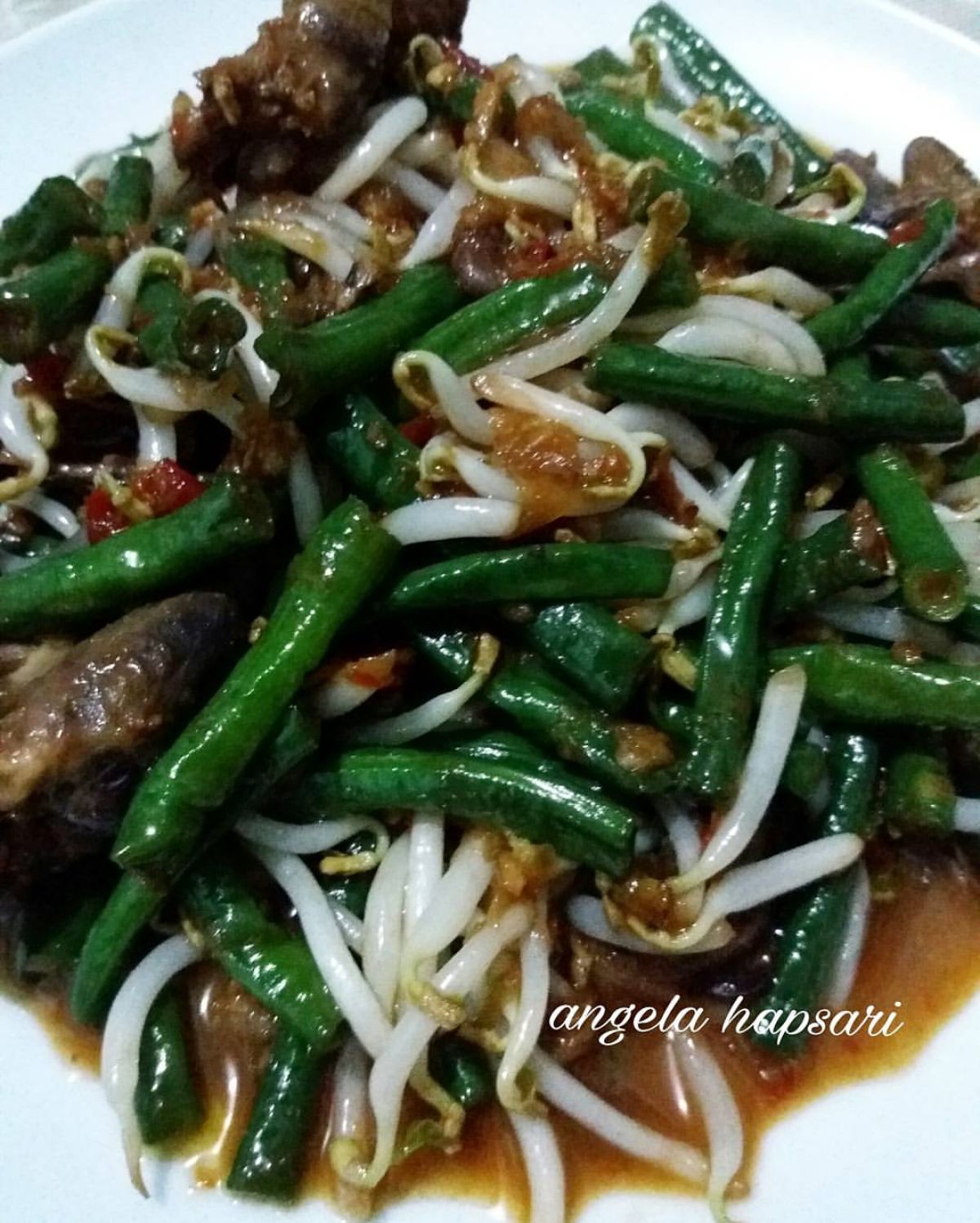 3. Selanjutnya, masukkan kacang panjang potong, aduk dan bumbui dengan garam, gula, kecap manis, dan saus tiram. Aduk hingga semua bahan tercampur rata.