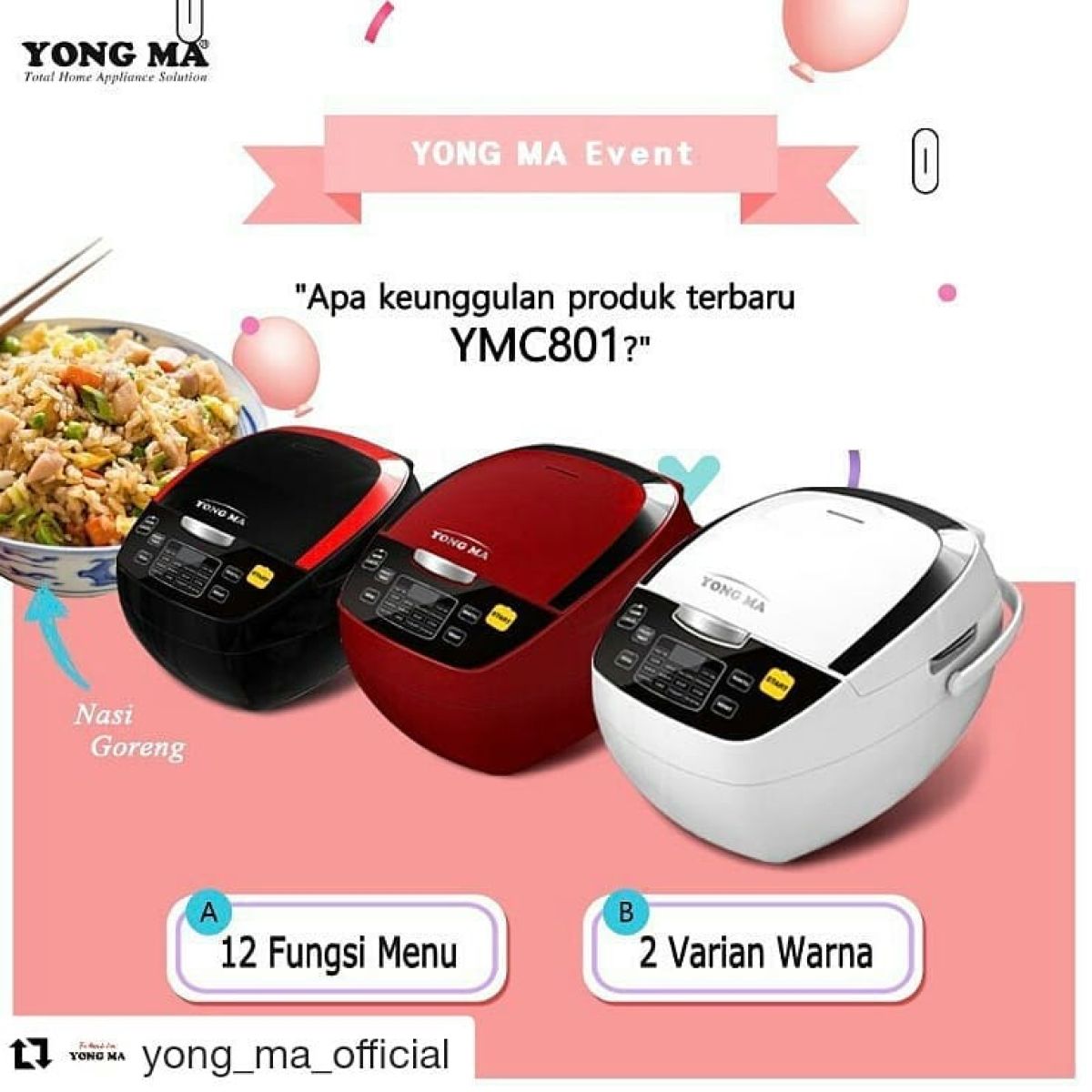 - 2 piring nasi putih (450 gram) - sekitar 600 kalori