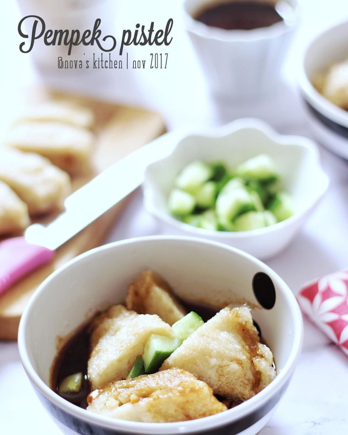 - Potong-potong pempek dan sajikan bersama kuah cuko yang telah dibuat.