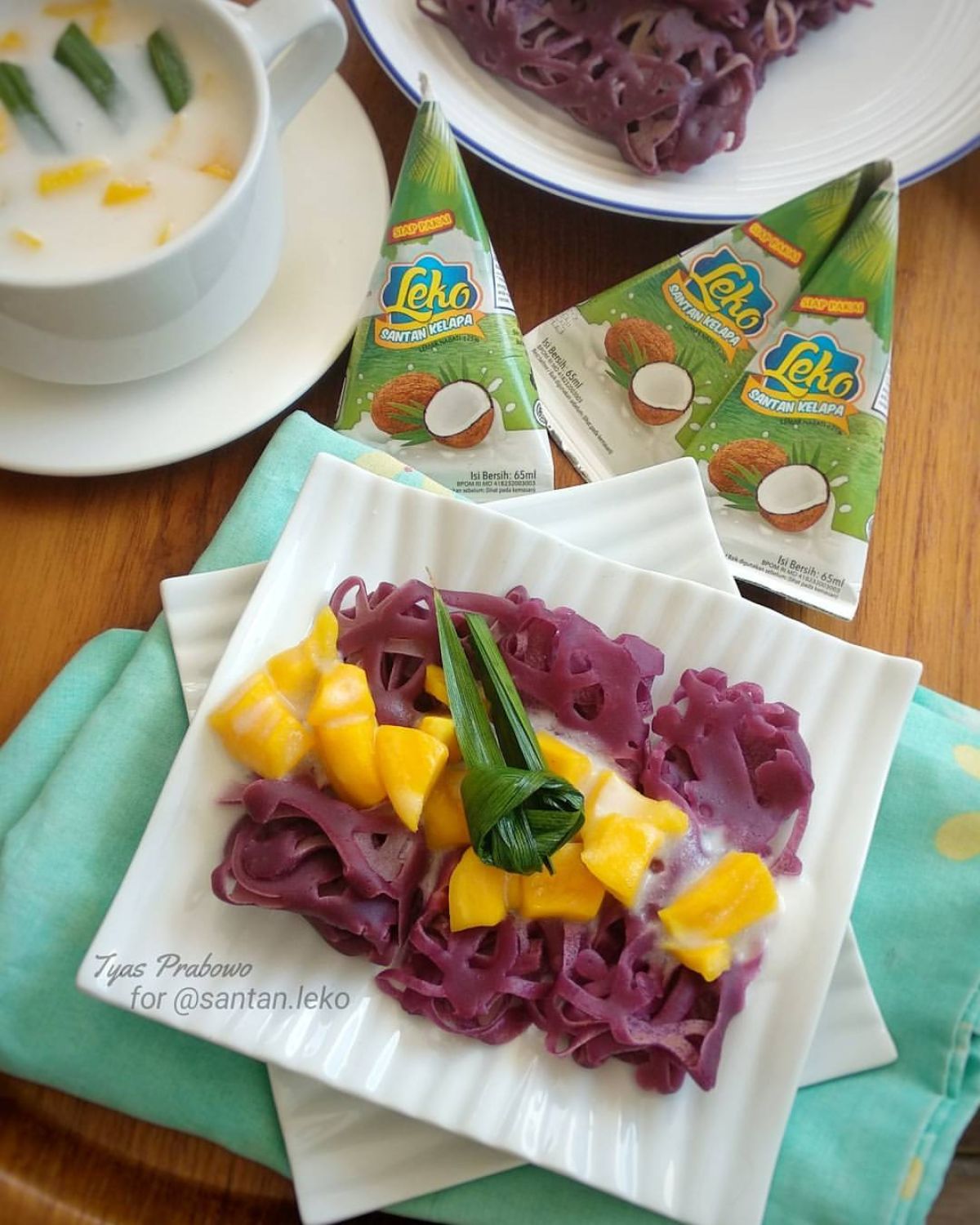 - Membuat Kuah Santan: Campur santan instan, air, garam, gula, dan daun pandan di panci. Masak dengan api kecil. Setelah mendidih, masukkan larutan tepung beras. Aduk-aduk hingga mengental.