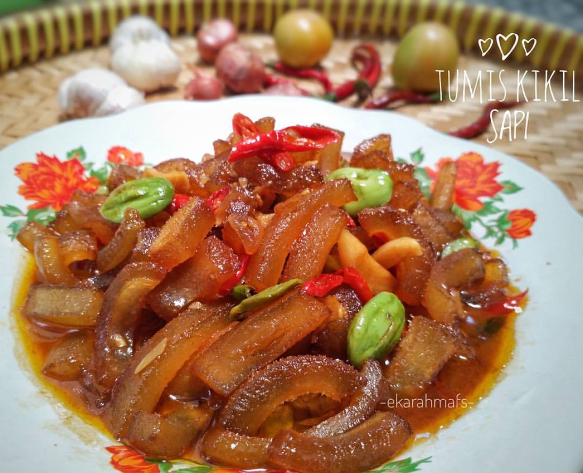 - Setelah matang, angkat dan sajikan tumis kikil sapi ini di atas piring datar bersama nasi hangat. Selamat menikmati!