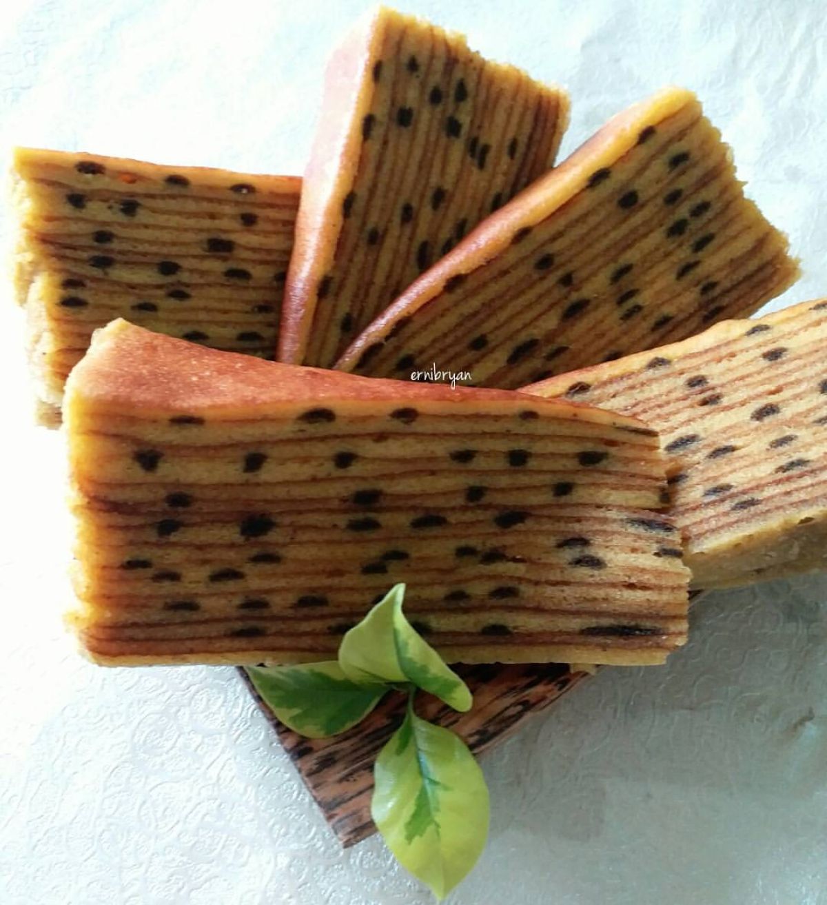 - Panggang lapisan: Ambil satu sendok sayur adonan, ratakan di dalam loyang, lalu panggang selama 10-15 menit hingga bagian atasnya kecokelatan. Kemudian angkat dan tuangkan adonan lapisan berikutnya, ulangi sampai adonan habis.