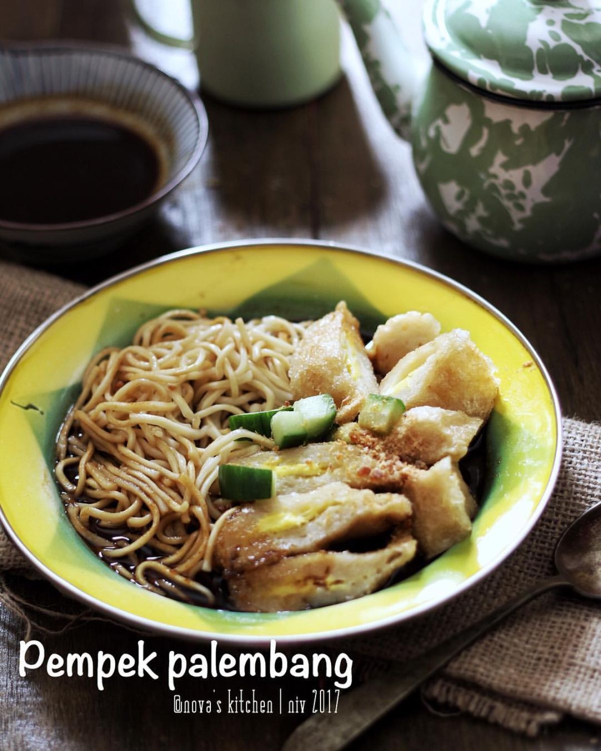 - Sajikan pempek dengan mie telur yang sudah direbus, irisan mentimun, dan taburan ebi halus sesuai selera. Jangan lupa cuko!
