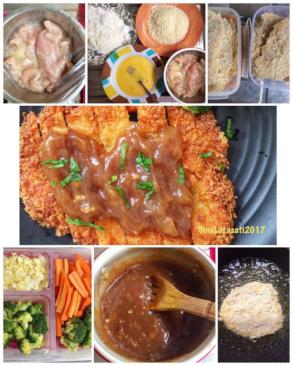 - Sajikan chicken katsu dengan kentang goreng, saus teriyaki, sayuran rebus, dan nasi putih. Makanan ini cocok untuk seluruh keluarga! Selamat menikmati!