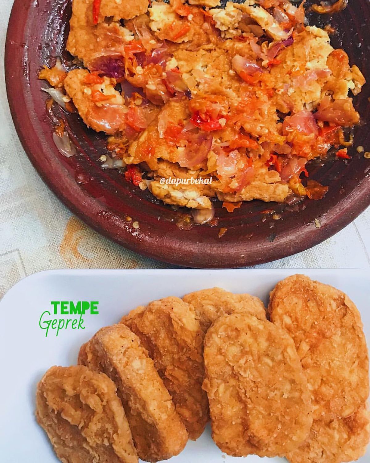 - Setelah tempe dingin sedikit, geprek atau siapkan di piring, lalu siram dengan sambal bawang di atasnya. Sajikan dan nikmati!