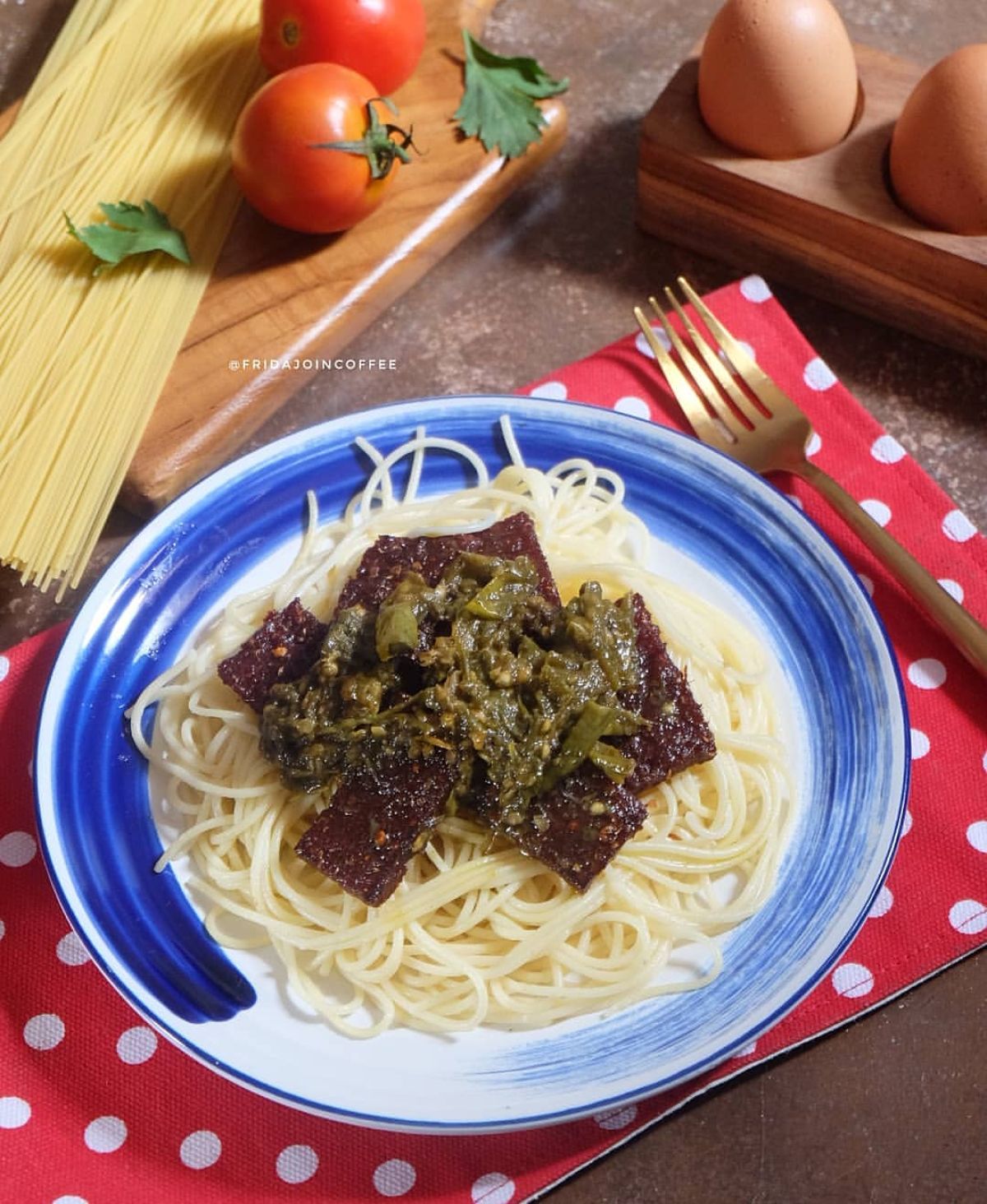 Spaghetti Dendeng Cabe Ijo adalah menu yang sangat seru untuk dicoba. Makanan ini terinspirasi dari masakan Indonesia yang digabungkan dengan pasta Italia. Dengan rasa yang unik dan menggugah selera, makanan ini bisa jadi pilihan anti-mainstream. Yuk, kita buat bersama!