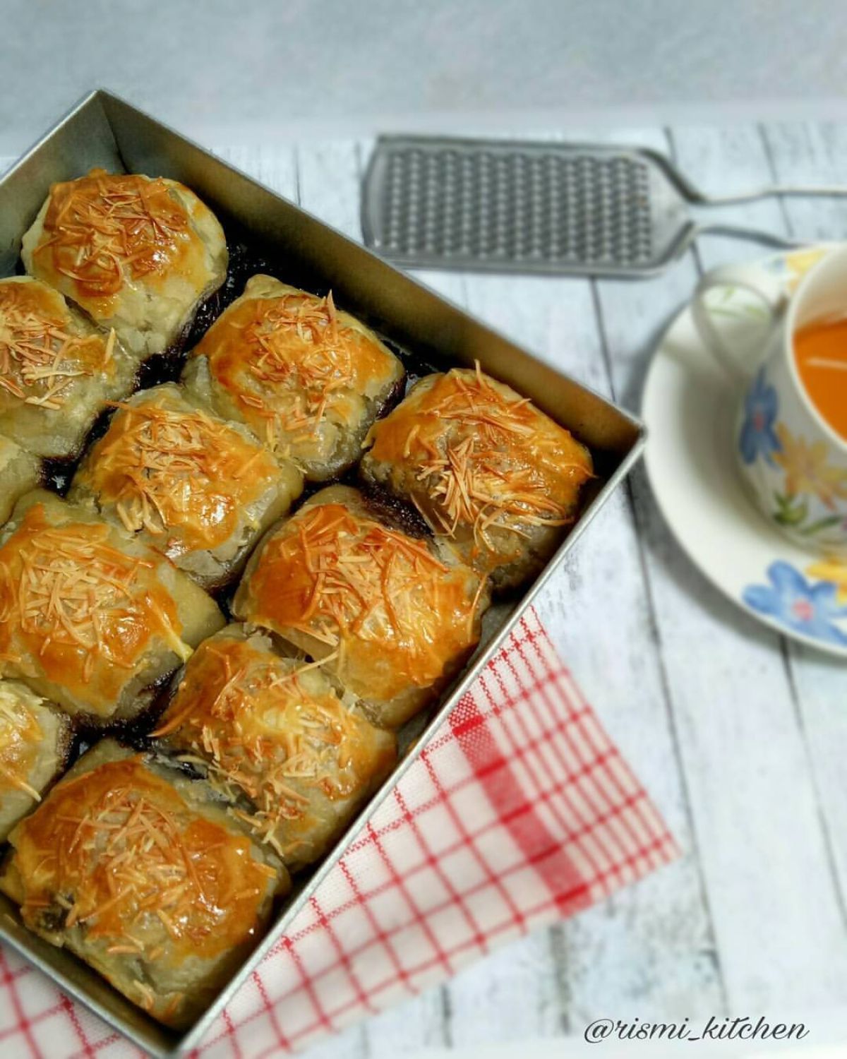 - Taburkan parutan keju di atas puff cakrammu. Keju ini akan menambah rasa gurih yang menggoda!