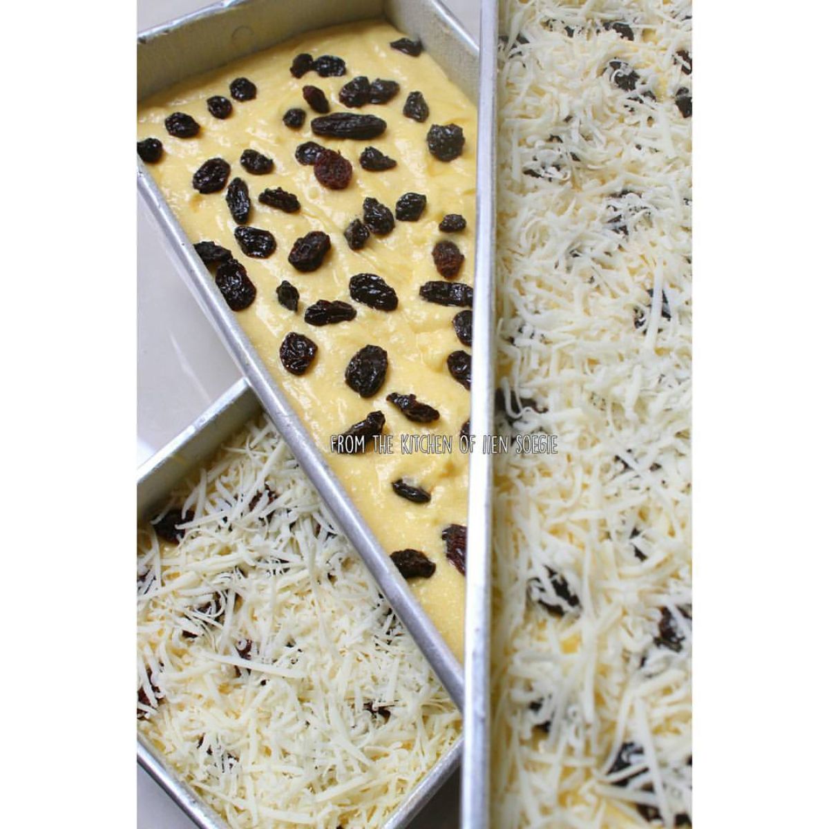 - Siapkan loyang yang sudah diolesi dengan sedikit minyak atau dialasi dengan kertas roti. Tuangkan adonan ke dalam loyang.