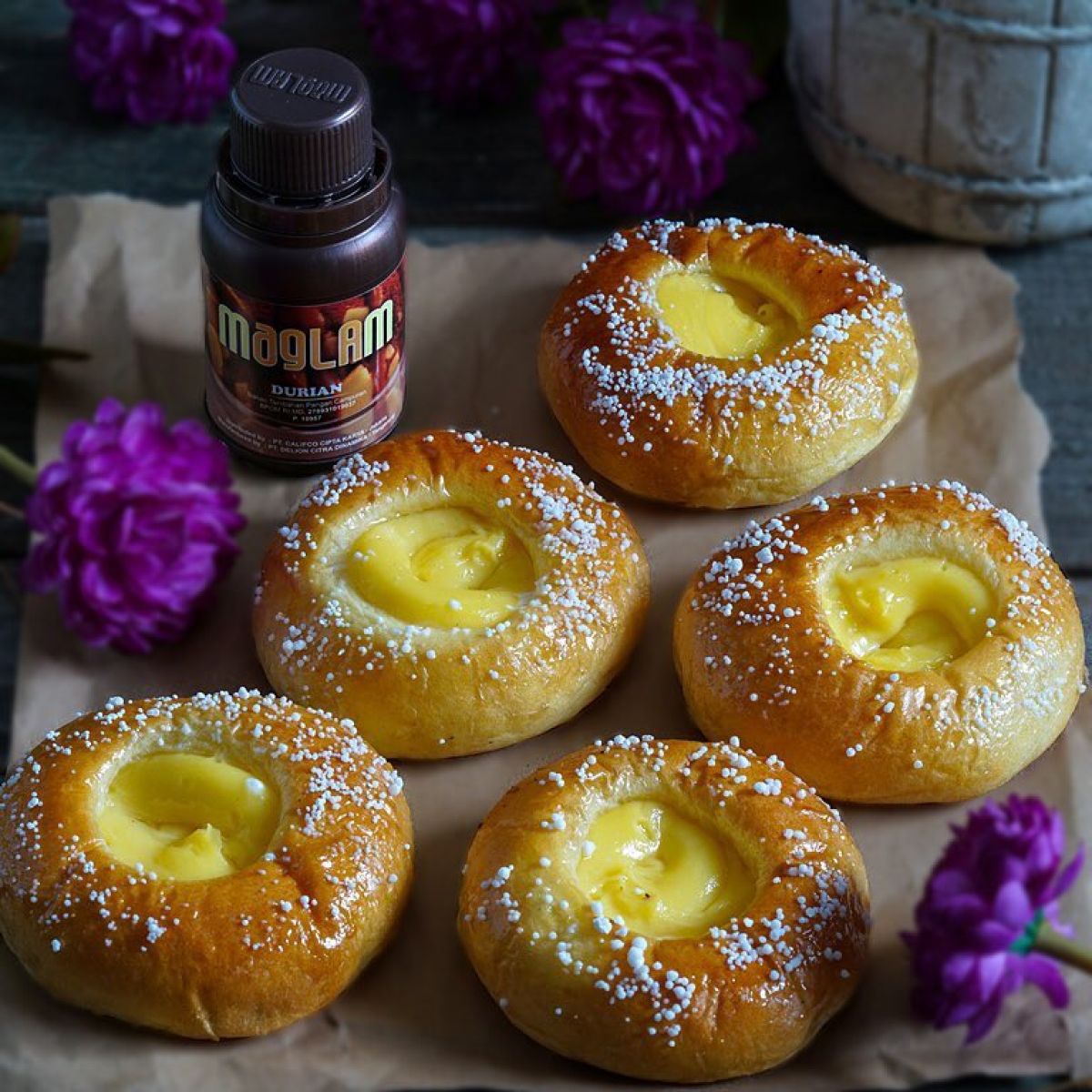 - 200 gram selai durian (pilih yang sudah siap pakai seperti Maglam Durian)
