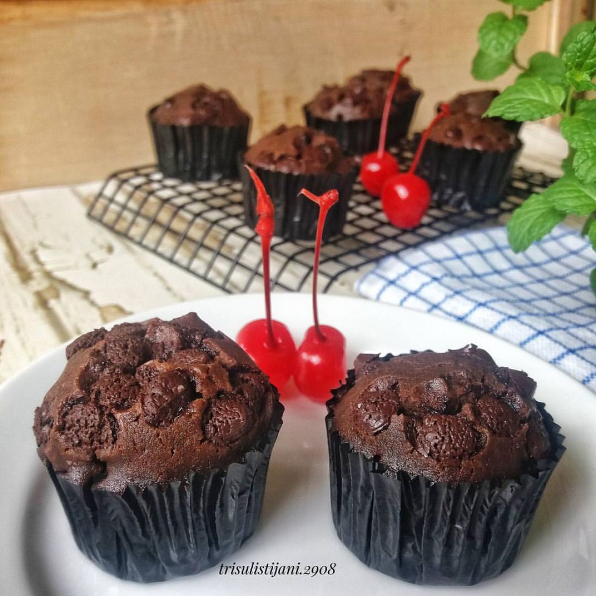 Selamat menggiling muffin coklat yang nikmat ini! Sajikan sebagai teman minum kopi atau teh di sore hari. Muffin coklat ini ideal untuk cemilan di rumah maupun bekal sekolah.