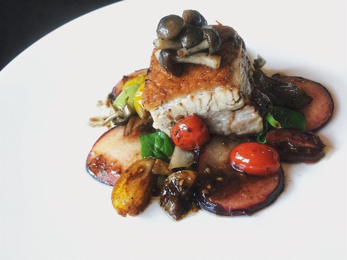 - Penyajian: Setelah perut babi matang, potong-potong sesuai selera. Sajikan dengan tumisan bawang dan plum, taburkan jamur enoki yang telah digoreng di atasnya. Siram dengan saus balsamik untuk sentuhan akhir.