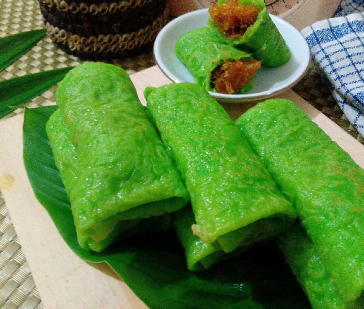 Dadar gulung pandan adalah salah satu jajanan khas Indonesia yang sangat disukai. Biasanya dijumpai di pasar-pasar tradisional dan acara-acara spesial. Makanan ini terdiri dari kulit tipis yang lembut dan diisi dengan kelapa manis yang gurih. Dadar gulung merupakan simbol keragaman kuliner Indonesia yang kaya akan rasa dan tradisi. Mari kita coba resepnya!