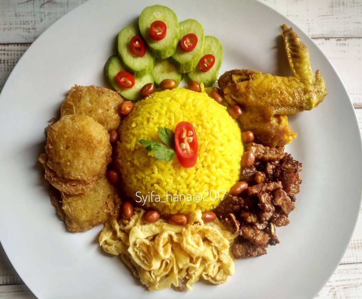 - Sajikan nasi kuning dengan pelengkap seperti ayam goreng kuning, perkedel, dan timun untuk menambah kelezatan.